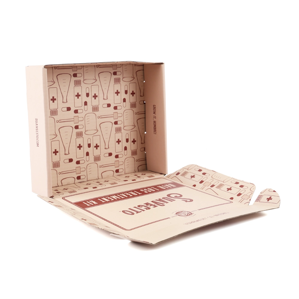 Considering that cosmetics are usually packaged in glass or plastic bottles containing liquids, it is of utmost importance that the packaging box can effectively protect the product from damage. Therefore, we usually recommend that you make double-sided framed express boxes. Double-sided framed boxes require three layers of paper, which is one layer more than single-sided framed boxes and is more sturdy.
