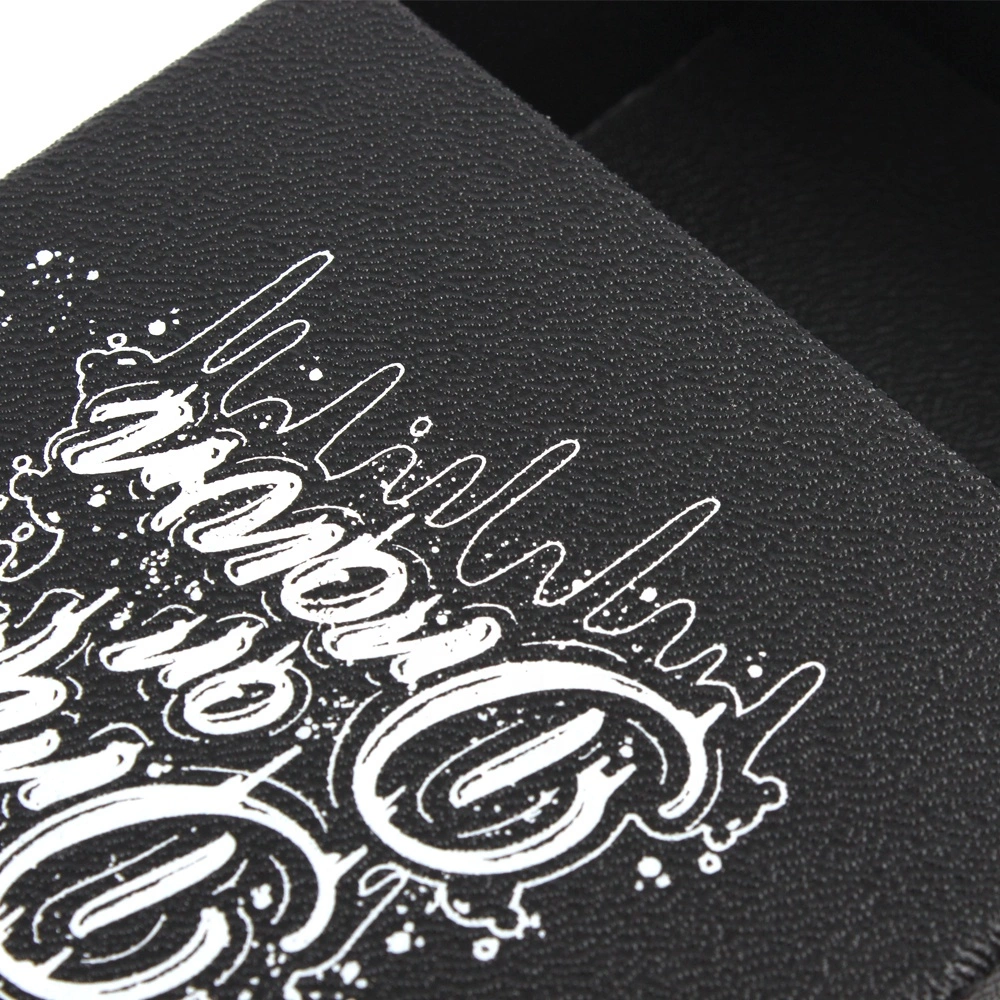 These black gift boxes are jewelry packaging boxes, and its material and craftsmanship are its most prominent features. It uses a special black leather-textured paper, giving it a very realistic leather look and feel. The textured surface provides a more luxurious touch. This texture and color are ideal for men’s jewelry packaging. The logo needs to be highlighted through hot stamping, embossing, or debossing, as the textured and uneven surface makes printing less effective than these methods.