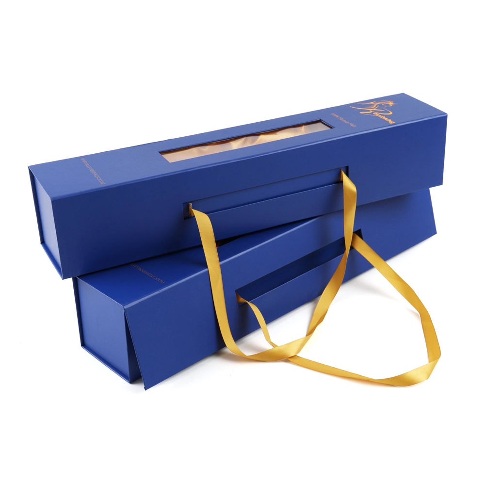 Firstly, it uses cardboard with a thickness of 2-3mm, which is very sturdy and will not easily break even after impact. Secondly, it is a gift box with a window. The transparent PVC window allows both merchants and customers to easily distinguish the product style. The box is a foldable magnetic gift box design, which not only saves shipping space and freight, but also facilitates storage. It is also very easy to operate.