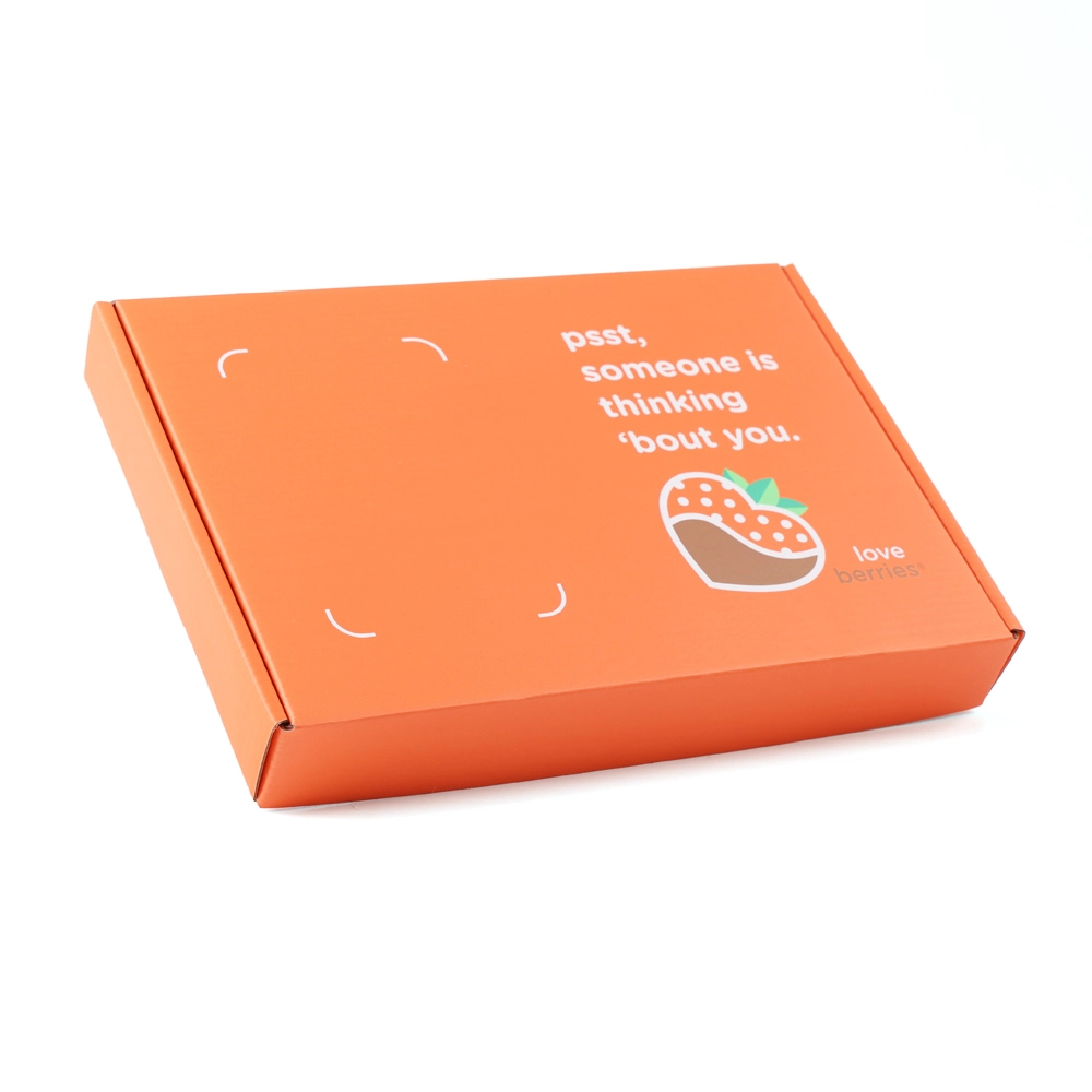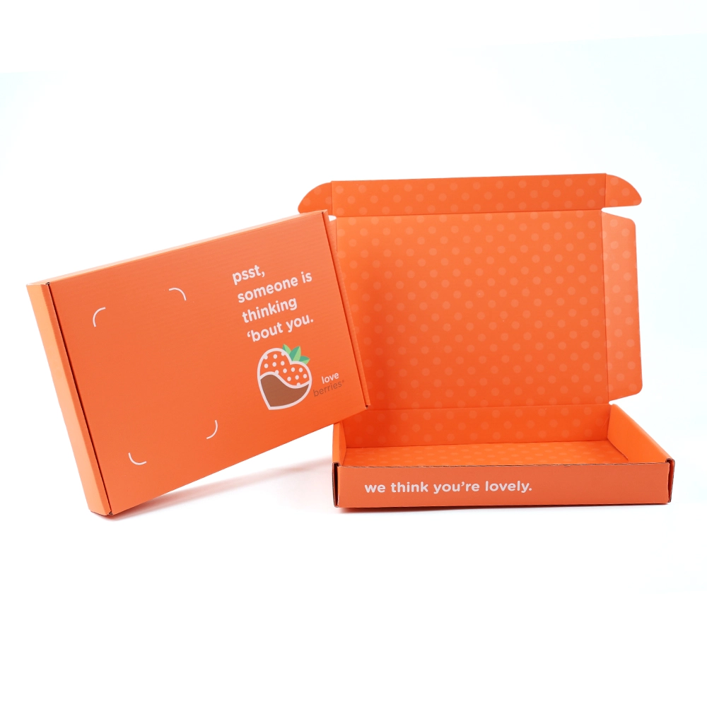 These are boxes for chocolate covered strawberries also doubles as a courier shipping box. It uses three layers of paper and is printed on both sides. The box’s shape resembles an airplane box, making it the strongest and most durable of all courier boxes. It’s ideal for packaging fragile items and food.