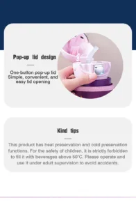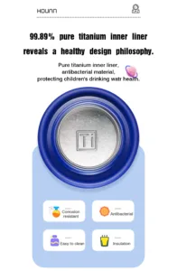 This is a titanium thermos with a pop-up cover; it is not made of stainless steel.