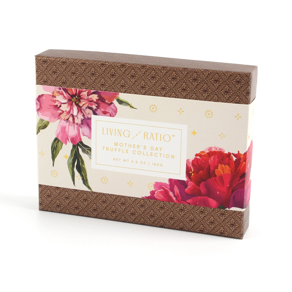 This chocolate box features a very classic color scheme for chocolate packaging, with brown and gold colors that complement the color of the chocolate itself. This chocolate box also serves as a gift box, made from high-quality, reusable cardboard material. It not only looks luxurious but is also very sturdy, effectively protecting the chocolates from damage.
