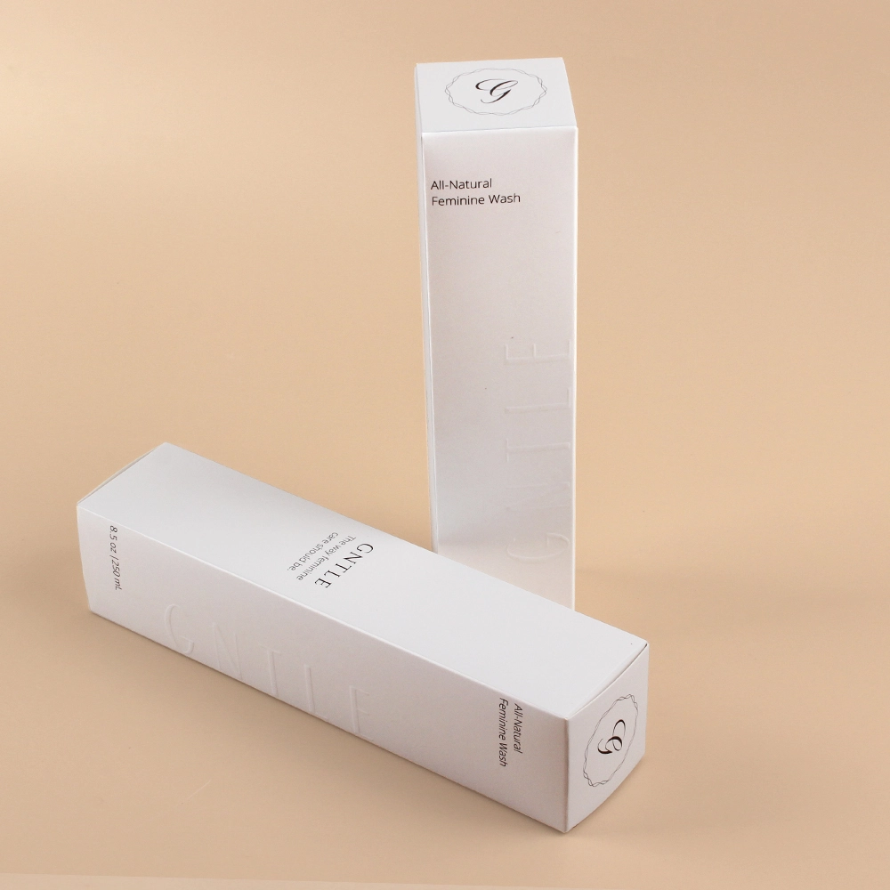 The box’s design is also very simple, featuring a single black color printed and processed embossed logo. Because this product is a feminine wash, both the product itself and the packaging are environmentally friendly, making it particularly suitable for European countries with plastic restrictions.