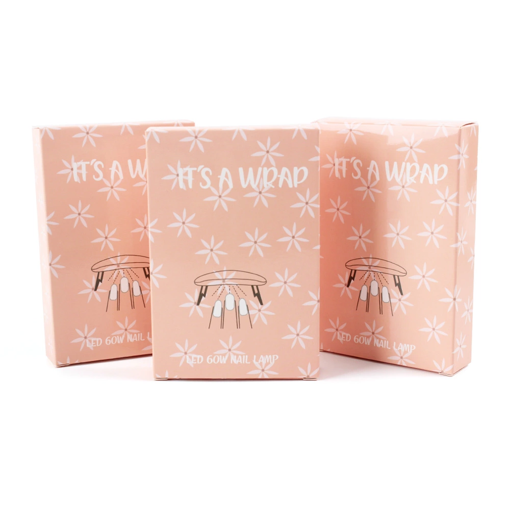 This cosmetic sample packaging box is a cardboard box with openings on the top and bottom, which is used to package nail art related products. It can be used to package wearable nails or nail art stickers, etc.