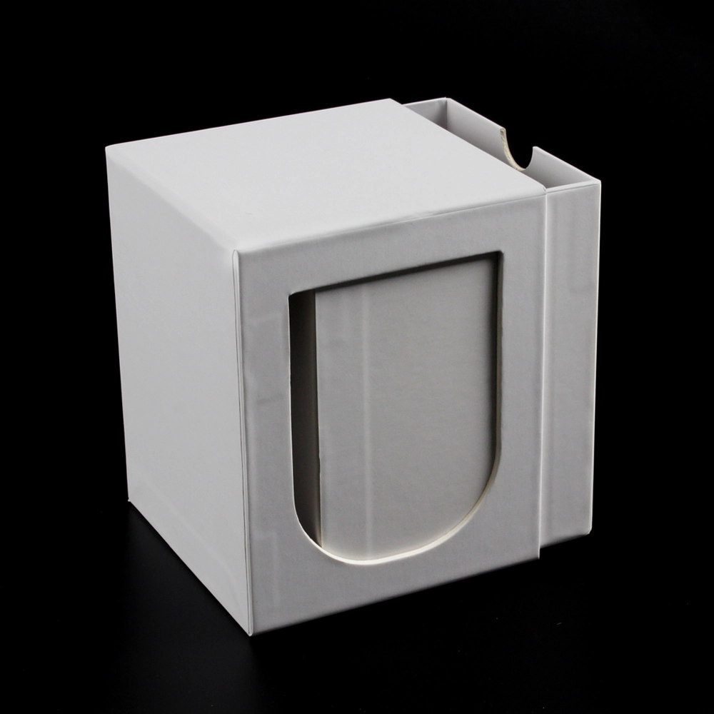 This custom candle box is a pure white paper candle packaging box. The pull-out design makes it easy to open and close, while also providing better protection for the candle. The inner box features a semi-circular cutout for easy finger access to open and close the box. The outer box features a cutout design in the shape of a candle, adding a touch of elegance and sophistication to the packaging.