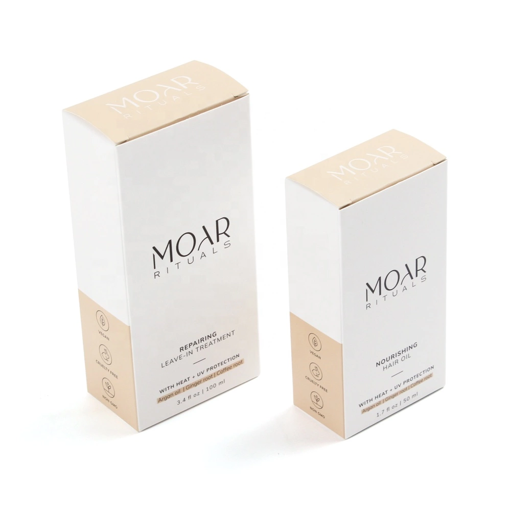 This is a custom essential oil box. It consists of two parts: the outer box and the inner corrugated lining. This packaging method is often recommended for cosmetics and skincare products packaged in glass bottles. It provides a double layer of protection for the product. It’s not only suitable for in-store sales, but also ideal for online delivery.