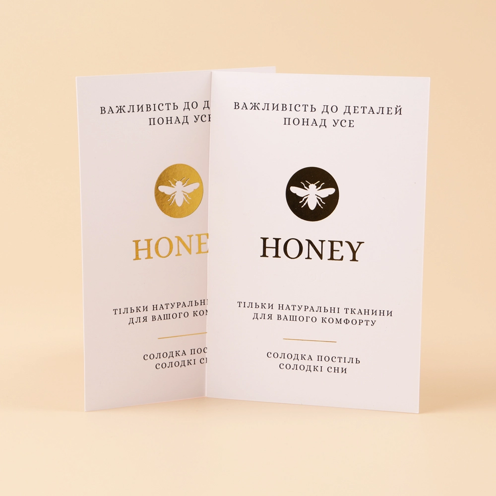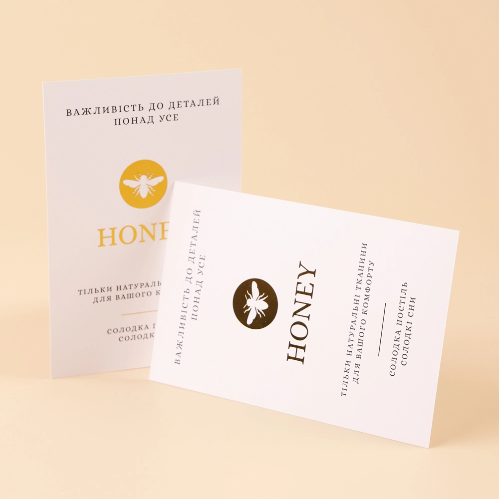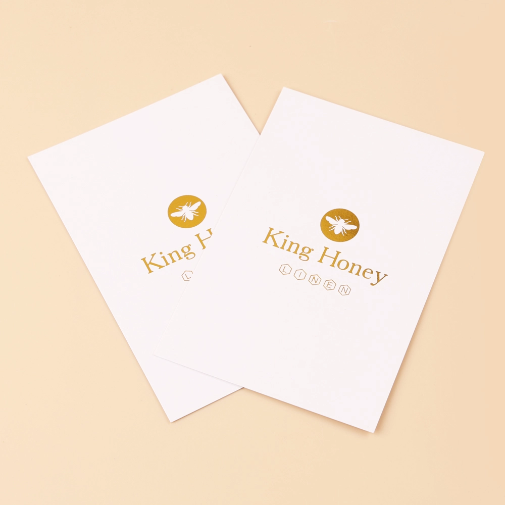 These are customizable thank you cards, primarily designed for home textiles. It’s paired with a box, featuring a white background with a gold logo and simple black printing. The card looks incredibly smooth and shiny, making it ideal for packaging silk home textiles.