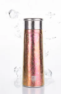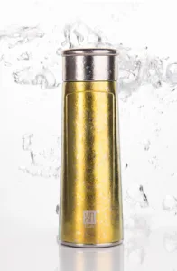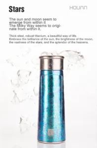 This is a titanium thermos with a pop-up cover; it is not made of stainless steel.