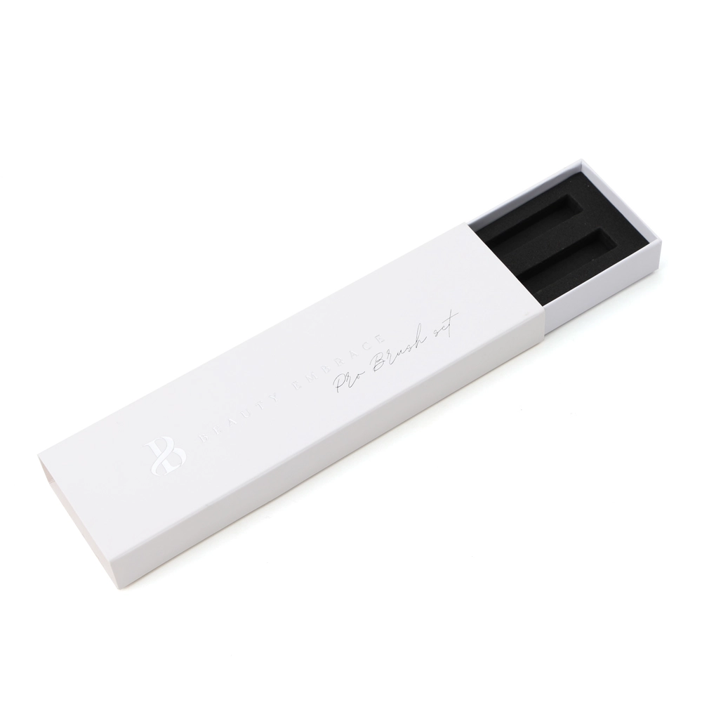 This pull-out box uses 350g white card, and the printing color is very simple, only black. The logo uses a silver stamping process, which goes well with white. This box consists of three parts: the outer cover sleeve, the inner tray, and the built-in sponge. This box can be shipped flat or folded. We recommend shipping it flat because it is more resistant to pressure when it is not folded. If the box is folded before shipping, it will be more easily crushed. In addition, the folded box is larger and the shipping cost is higher. At the same time, we will provide folding instructional videos to help everyone complete the folding easily.