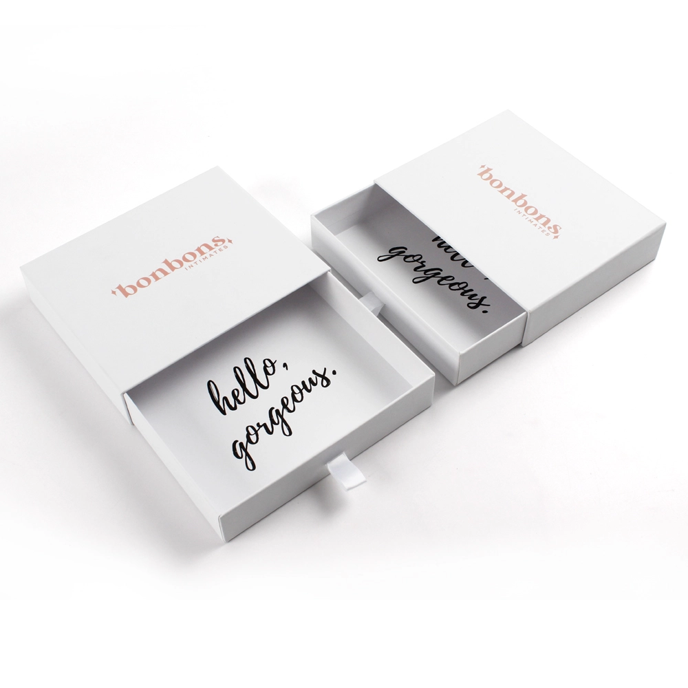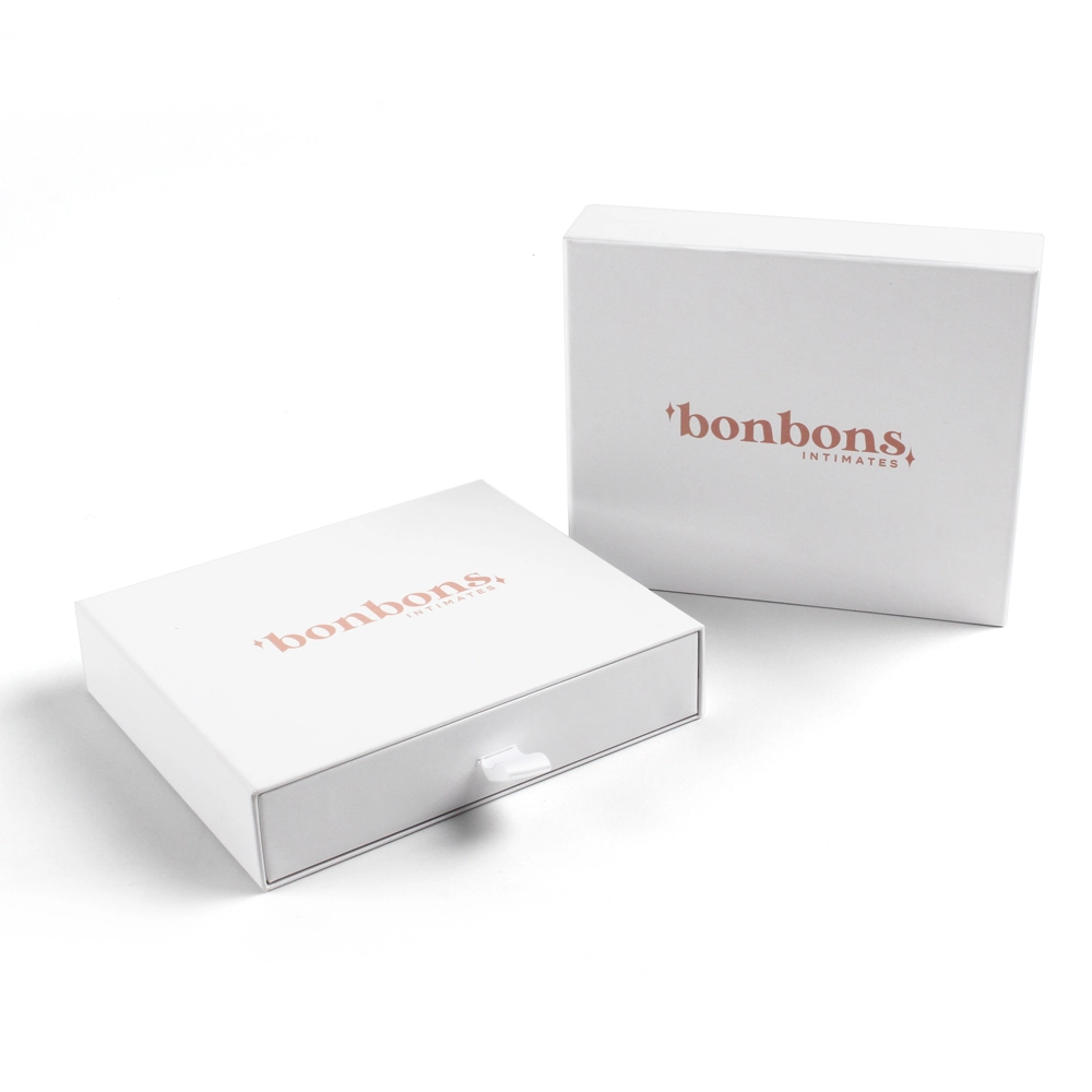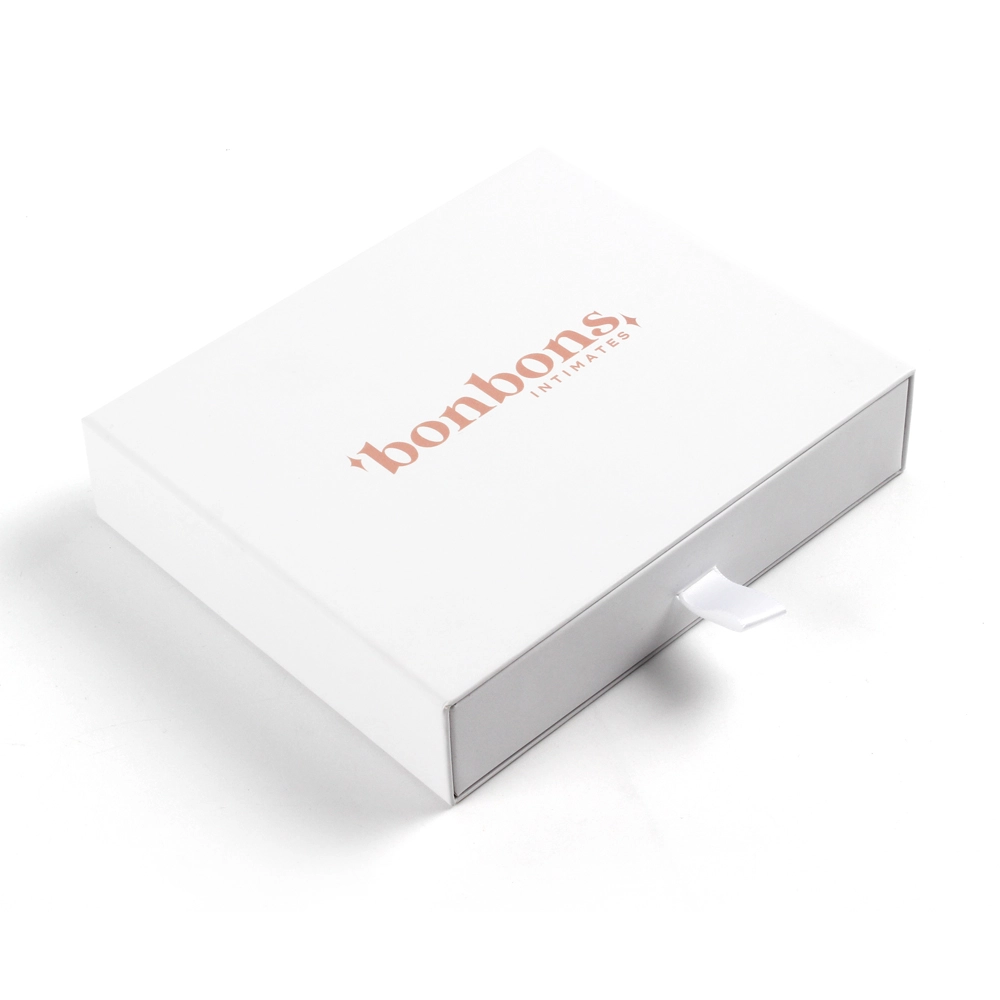 This lingerie box is a gift packaging box for lingerie. It is made of cardboard. It opens with a pull-out design, and the ribbon color can be matched to the brand color or the lingerie color. This lingerie gift box is more suitable for lightweight lingerie styles or intimate apparel. It is not suitable for thicker or larger lingerie items. The pull-out design can not only be used for product packaging, but also be reused as a storage solution for the product.