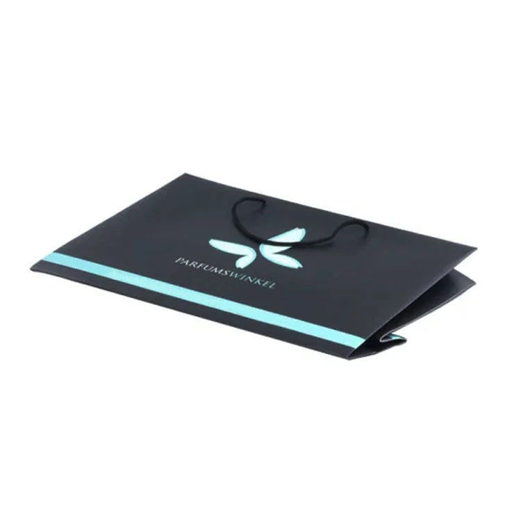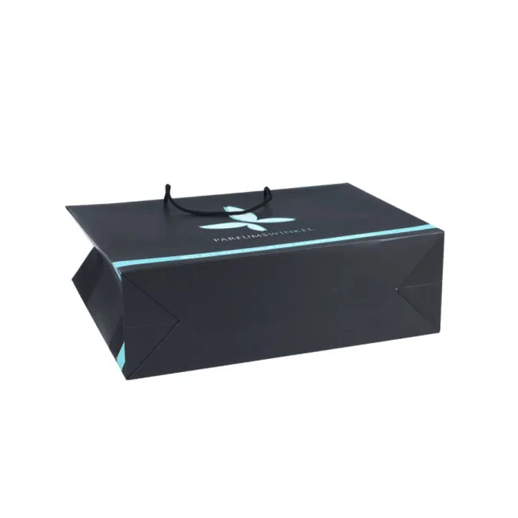 This paper bag uses a knotted cotton rope handle instead of a glued ribbon handle. This is more suitable for heavier products, as perfume itself is relatively heavy and fragile. If the paper bag’s handle is not strong enough, it increases the risk of the product falling and breaking.