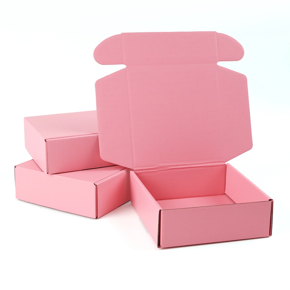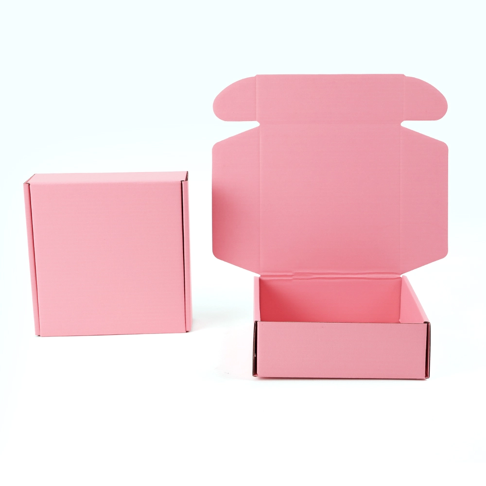 These are square, pink shipping boxes. Both sides are solid pink, without any unnecessary designs or text. It’s ideal for small and medium-sized businesses or startups with limited volume requirements. It’s ideal for packaging beauty products or other small gifts. It can be used with stickers to print logos and other information, reducing printing costs.
