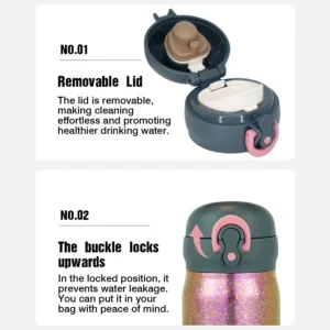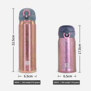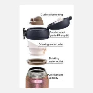 This is a titanium thermos with a pop-up cover; it is not made of stainless steel.