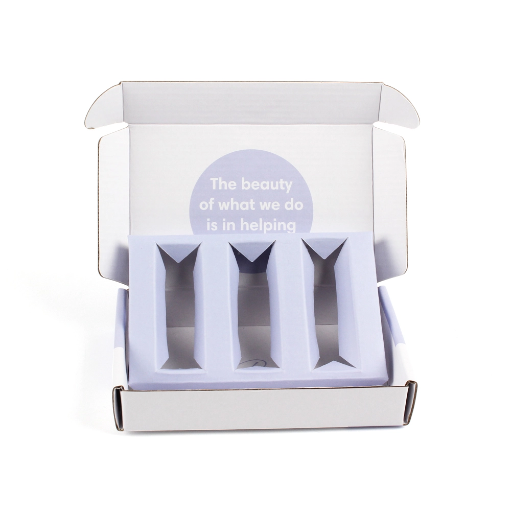 The inner lining uses white cardboard and corrugated cardboard made with the same process, and can be used for securing and packaging bottled products such as perfumes, lotions, lip glosses, and lipsticks. It can also be printed with various colors and patterns to match the brand’s color scheme.