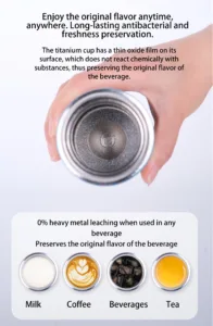 This is a titanium thermos with a pop-up cover; it is not made of stainless steel.