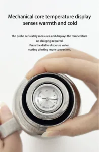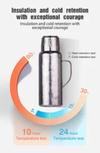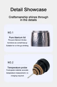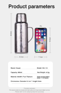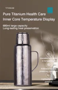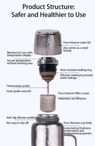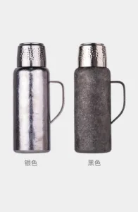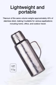 This is a titanium thermos with a pop-up cover; it is not made of stainless steel.