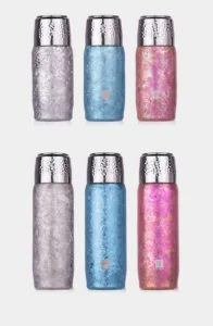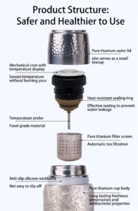 This is a titanium thermos with a pop-up cover; it is not made of stainless steel.